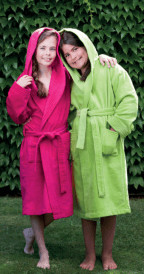 Wij bieden een ruime keuze aan hoogwaardige kwaliteiten, perfect afgestemd op uw wensen. Kies voor onze heerlijk zachte Purelia kinderbadjassen (385/400 gr/m²) of ga voor de extra luxe uitstraling van onze Velours varianten (325/350 gr/m²). Voor de allerkleinsten hebben wij een speciale, extra zachte babybadjas (385/400 gr/m²). Alle modellen zijn bovendien voorzien van een comfortabele capuchon, ideaal om kinderen na een bad of een duik in het zwembad snel en behaaglijk warm te houden.